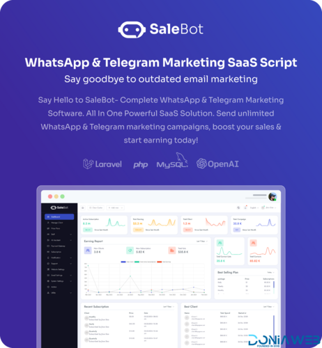 Introducing SaleBot- WhatsApp and Telegram Marketing SaaS script. Automate your marketing campaign with the Leading SaleBot Script- SaaS-ready WhatsApp Cloud API-based bulk sender, AI assistant, and AI support system. Skyrocket your sales with SaleBot.