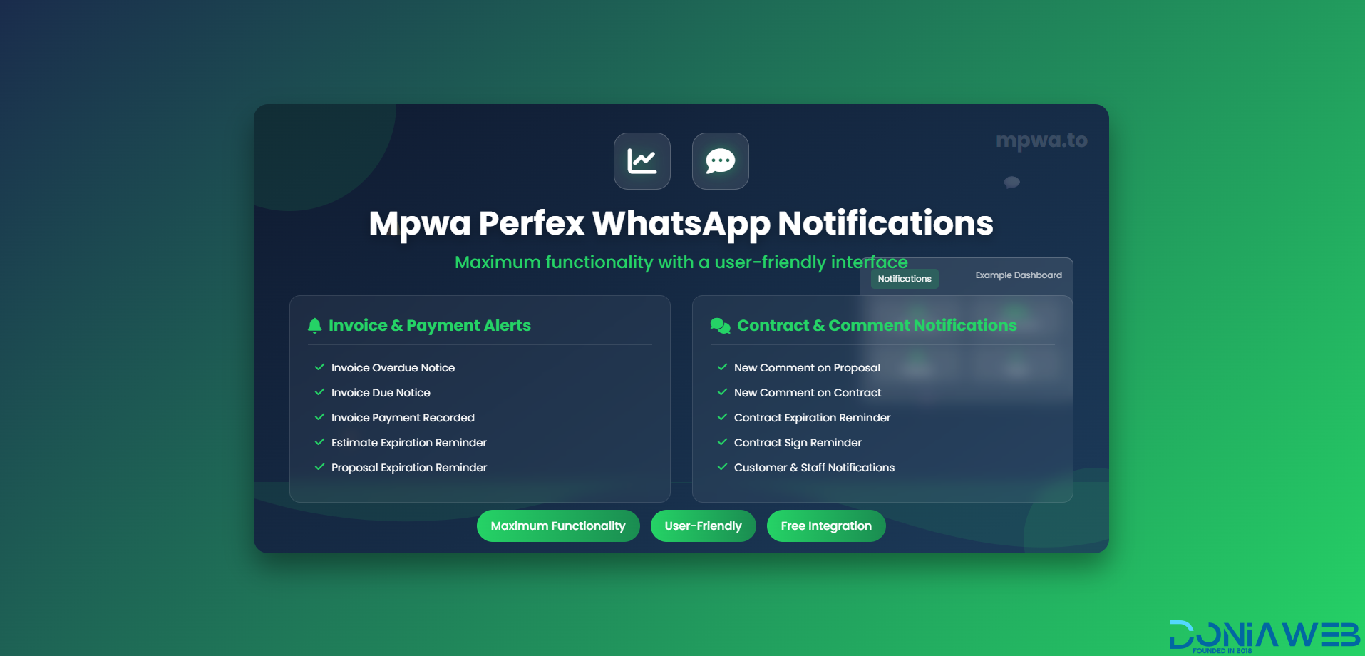 With the Perfex WhatsApp Notifications Dashboard, you can: