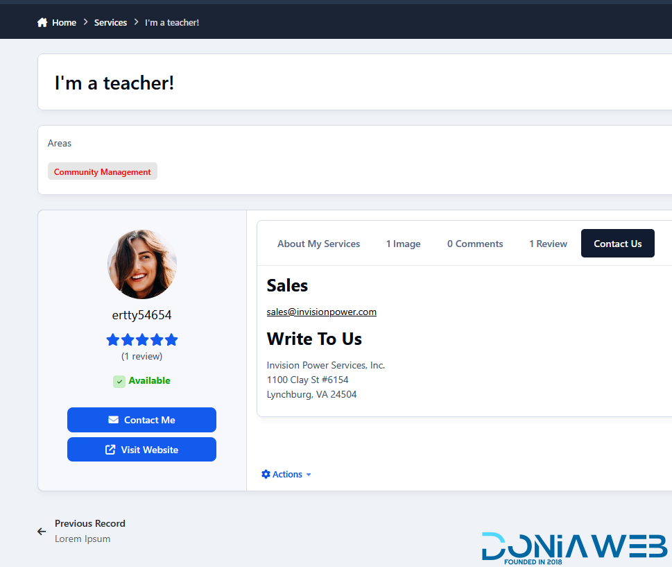 Visually based on the Providers Directory from IPS, this app will allow members to offer their services in your community. You can verify the record and allow members to bump their records, which will bring them to the top of the listing.