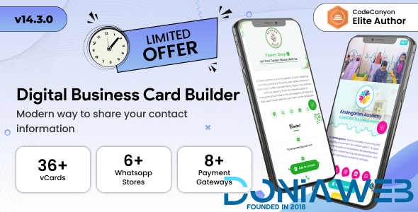 InfyVcards-SaaS / Business Card is a Multi-user Digital Business Card Builder system, that allows many users to create their business cards or digital cards with lots of information and they can share it with their customers.