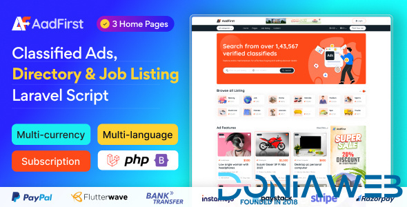 Aadfirst – Classified Ads, Directory & Job Listing Laravel Script is a ultimate listing laravel script with multipurpose listing system. Aadfirst – Classified Ads, Directory & Job Listing Laravel Script provides seamless opportunities for business like Classified Ads listing, Directory Listing for Real Estate and Job Listing. Now its more easier to build a listing and classified business with Aadfirst – Classified Ads, Directory & Job Listing Laravel Script. Aadfirst – Classified Ads, Directory & Job Listing Laravel Script is best suitable for ads, advertising, buying, classifieds, e-commerce, laravel, live-chat, livewire, marketplace, monetization, navigation, pwa, selling, shopping, transactions