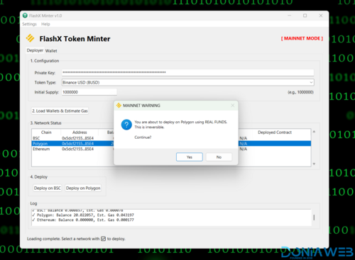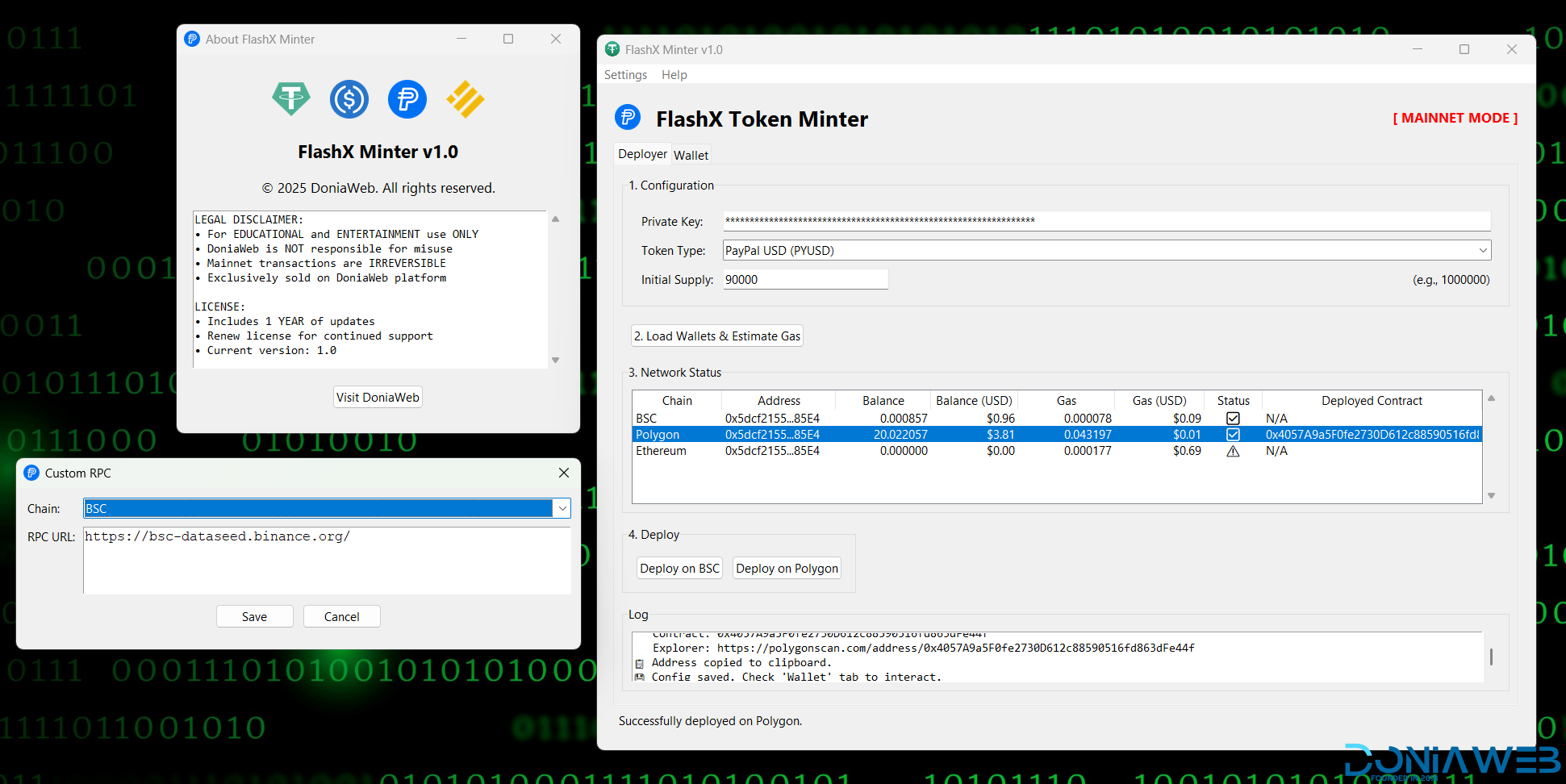 FlashX Minter is different. It is the only publicly available tool that creates real, on-chain ERC20/BEP20-style tokens with the name and symbol of popular stablecoins. Every token you create is a genuine cryptographic asset on the blockchain, verifiable on explorers like Polygonscan and BscScan. We provide the on-chain proof that others can only pretend to have.
