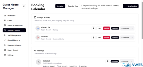 Booking Calendar: View and manage all bookings in an interactive calendar view.