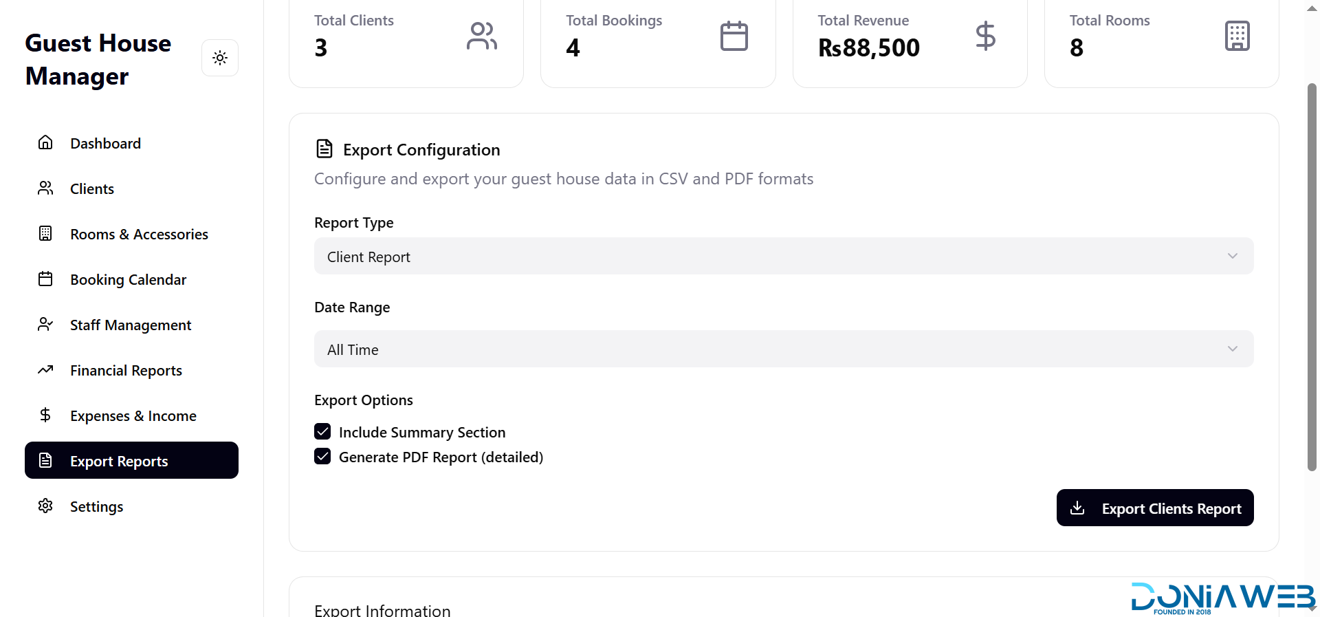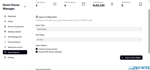 Export Reports: Download or export data for record-keeping and analysis.