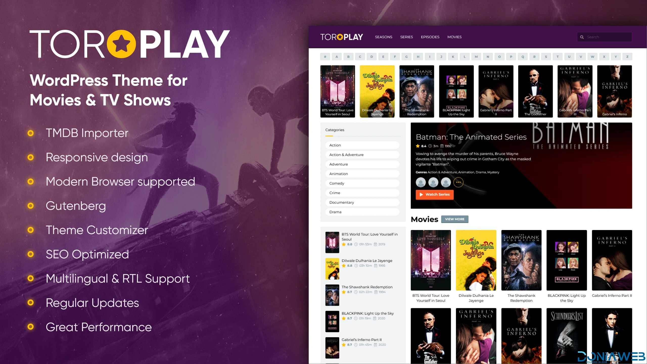 Ready to launch your own Netflix with ToroPlay – the ultimate WordPress theme for movies and series.