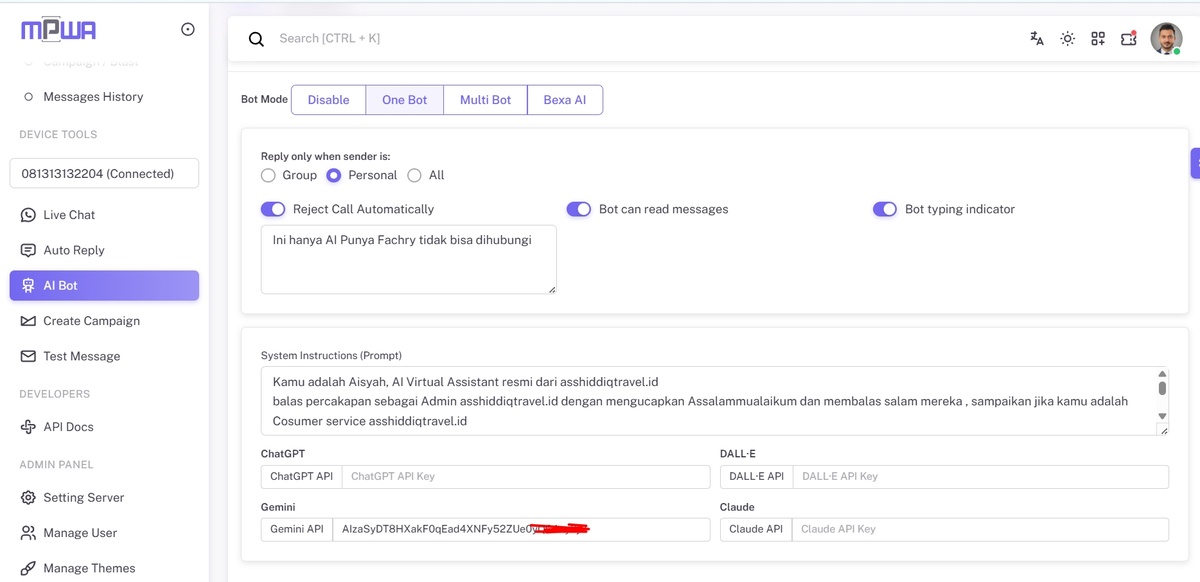 7 hours ago7 hr di versi sebelumnya Auto Reply dan AI berjalan dengan baik namun setelah saya update AI dan auto reply tidak berjalan . jd saya harus kembali ke versi 11.4.0 @Magd Almuntaser untuk gambarnya sudah saya berikan di file attch . mohon di cek nya saya memakai Gemini pro . di versi 11.4.0 saya test dengan domain lain berjalan dengan baik dan ketika saya mengakses domain saya selalau mengarah www.xxx.com/public jadi saya harus menggantinya dengan /en atau /id untuk bisa membukanya Edited 7 hours ago7 hr by fachry