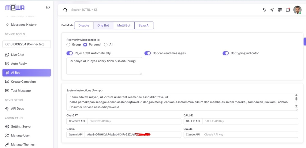 7 hours ago7 hr 27 minutes ago, fachry said:di versi sebelumnya Auto Reply dan AI berjalan dengan baik namun setelah saya update AI dan auto reply tidak berjalan . jd saya harus kembali ke versi 11.4.0 @Magd Almuntaser untuk gambarnya sudah saya berikan di file attch . mohon di cek nya saya memakai Gemini pro . di versi 11.4.0 saya test dengan domain lain berjalan dengan baikdan ketika saya mengakses domain saya selalau mengarah www.xxx.com/public jadi saya harus menggantinya dengan /en atau /id untuk bisa membukanyasejauh ini punyaku Auto Reply dan AI Bot masih normal. V.11.6.1
