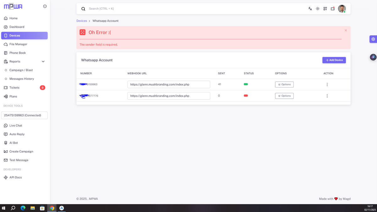 4 hours ago4 hr am getting this when trying to set up the webhook url and saving it help fix this @Magd Almuntaser or any solution kindlyhello regarding webhook how can i set it not reply to group but only inboxes Edited 4 hours ago4 hr by digil digil